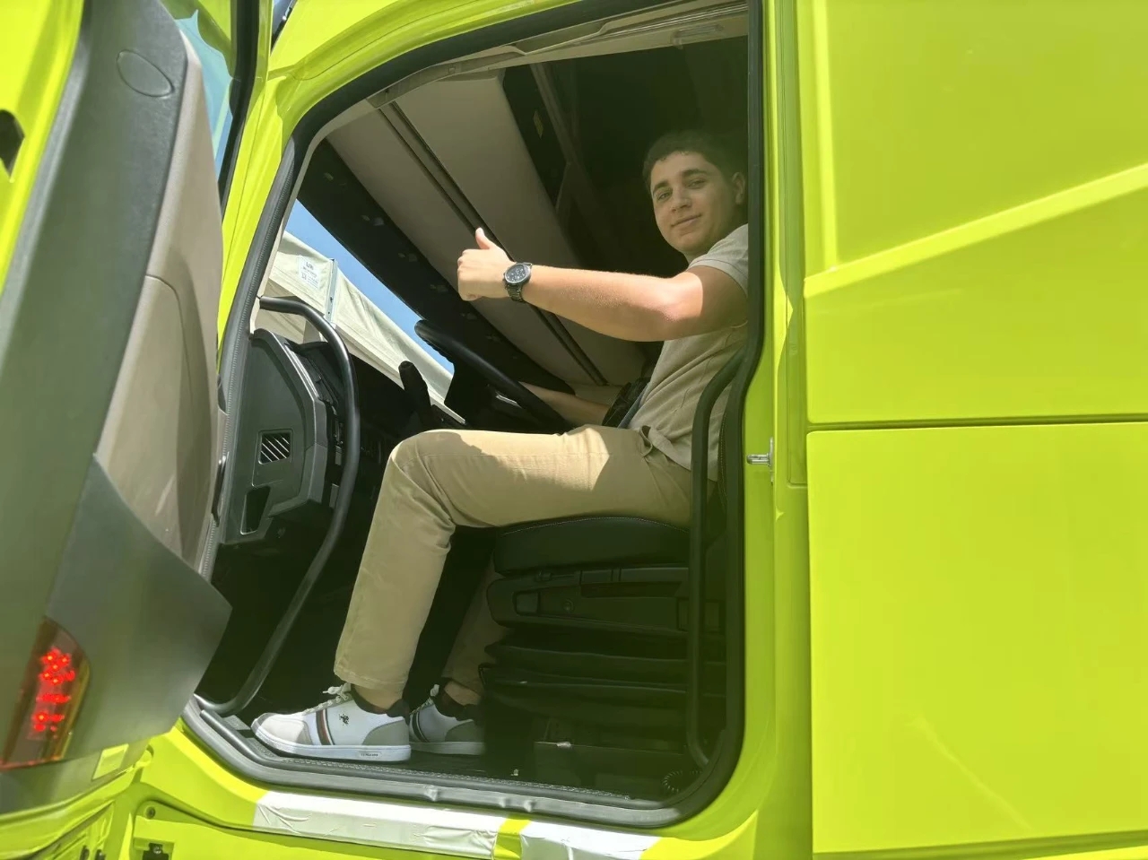 此次“出戰(zhàn)”的大運V9燃油牽引車是定位長途干線物流的高端重卡。X型前臉設(shè)計,鷹眼大燈,造型科幻,外觀炫酷,彰顯著時尚和潮流。黃金動力鏈、平地板設(shè)計、多功能氣囊座椅、多媒體顯示屏等國際一流動力組合和高端智能化的整車配置滿足了客戶需求,并讓前來參觀的海外客商連連贊嘆。